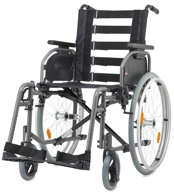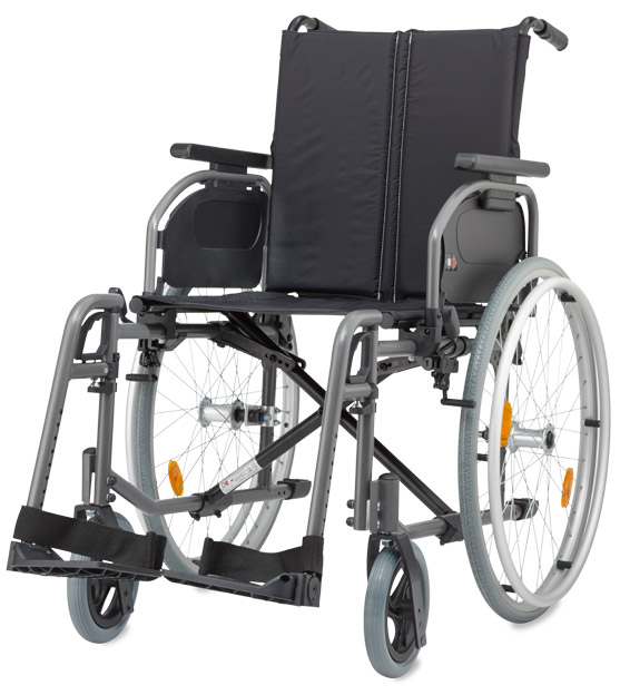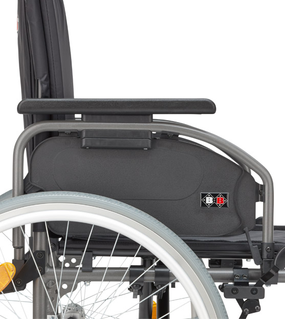 The Pyro Start Plus SL is the B+B lightweight wheelchair for tall people. Its dimensions match the Pyro Start Plus seamlessly, so that coverage is ensured up to a height of 2.10 m. The seat height (52.5 – 60 cm), seat depth (46 – 52 cm) and backrest height (46 – 50 cm) can all be adjusted, meaning the Pyro Start Plus SL provides maximum flexibility. All the usual Pyro Start Plus features can also be found here. For the comfort of the accompanying person, this lightweight wheelchair can also be equipped with an optional depth-adjustable push handle.